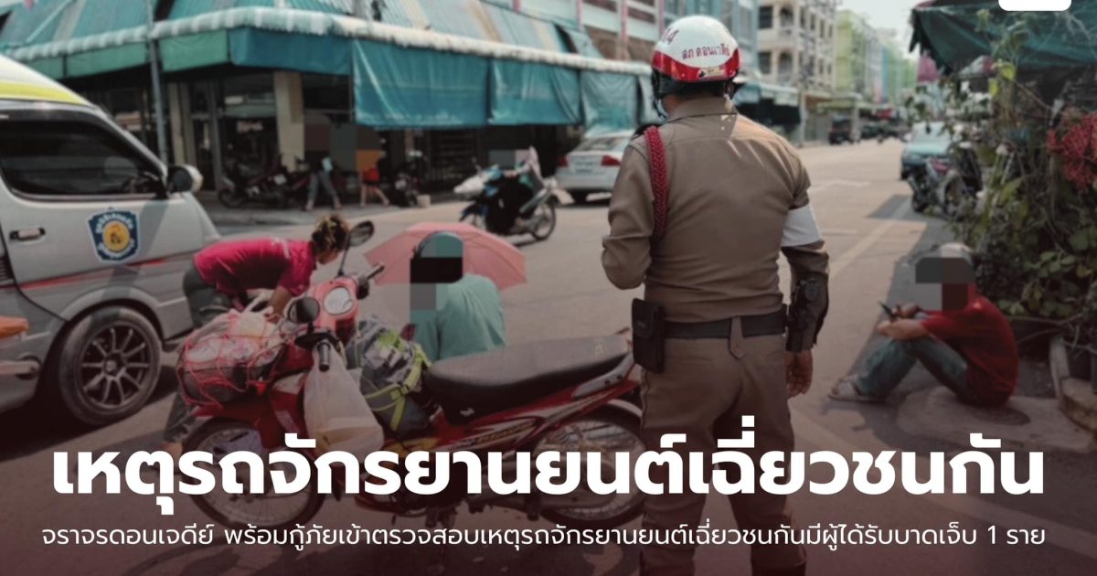 เร่งเข้าตรวจสอบช่วยเหลือที่เกิดเหตุ เป็น รถจักรยานยนต์ + รถจักรยานยนต์  บริเวณแยกโสภา มีผู้ได้รับบาดเจ็บ 1 ราย กู้ภัยนำส่ง รพ. สวมใส่หมวกกันน็อคทั้งคู่ ไม่มีทรัพย์สินหลวงเสียหาย