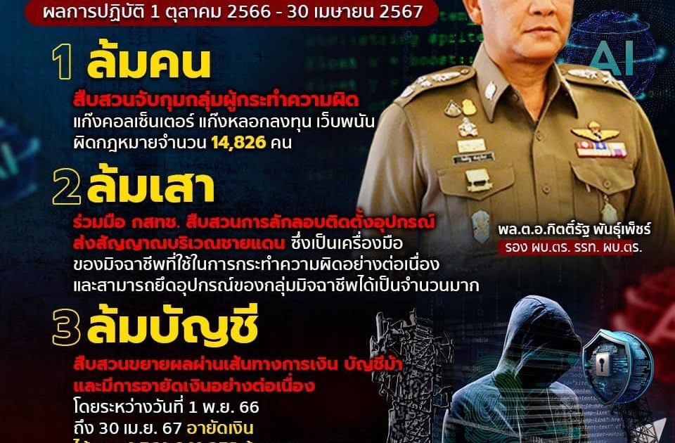 ตร.มุ่งมั่นคุ้มครองประชาชนจากภัยอาชญากรรมไซเบอร์ เดินหน้า “ล้มคน-ล้มเสา-ล้มบัญชี”