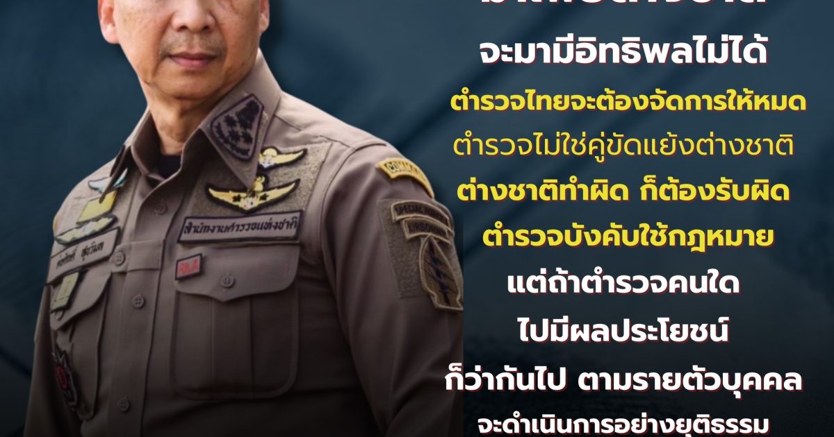 “ผืนแผ่นดินไทย มาเฟียต่างชาติจะมามีอิทธิพลไม่ได้ ตำรวจไทยจะต้องจัดการให้หมด ตำรวจไม่ใช่คู่ขัดแย้งต่างชาติ ต่างชาติทำผิด ก็ต้องรับผิด ตำรวจบังคับใช้กฎหมาย แต่ถ้าตำรวจคนใด ไปมีผลประโยชน์ ก็ว่ากันไป ตามรายตัวบุคคล จะดำเนินการอย่างยุติธรรม”