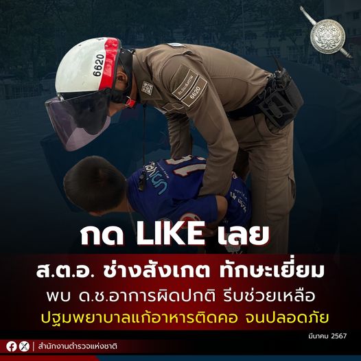 รรท.ผบ.ตร.ชื่นชม “ส.ต.อ.สน.ชนะสงคราม” ช่างสังเกต ทักษะดี เห็น ด.ช. อาการผิดปกติ รีบเข้าช่วยแก้อาหารติดคอ จนปลอดภัย