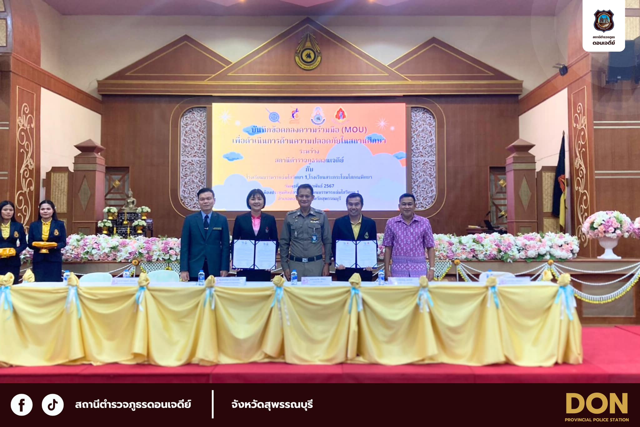 วันที่( 6 มี.ค.2567 ) เวลา 08.30 น. พ.ต.อ.เอกชัย ศรีเมือง ผกก.สภ.ดอนเจดีย์ ร่วมบันทึกข้อตกลงความร่วม