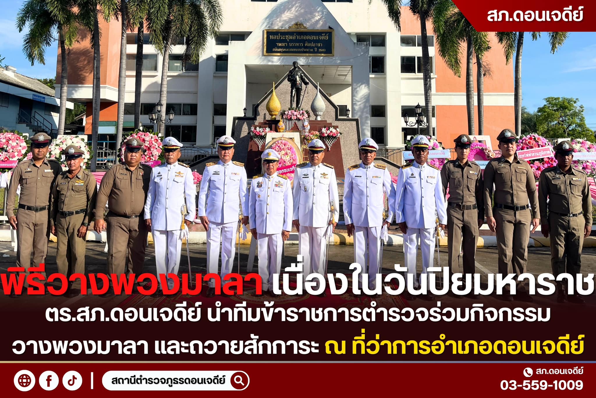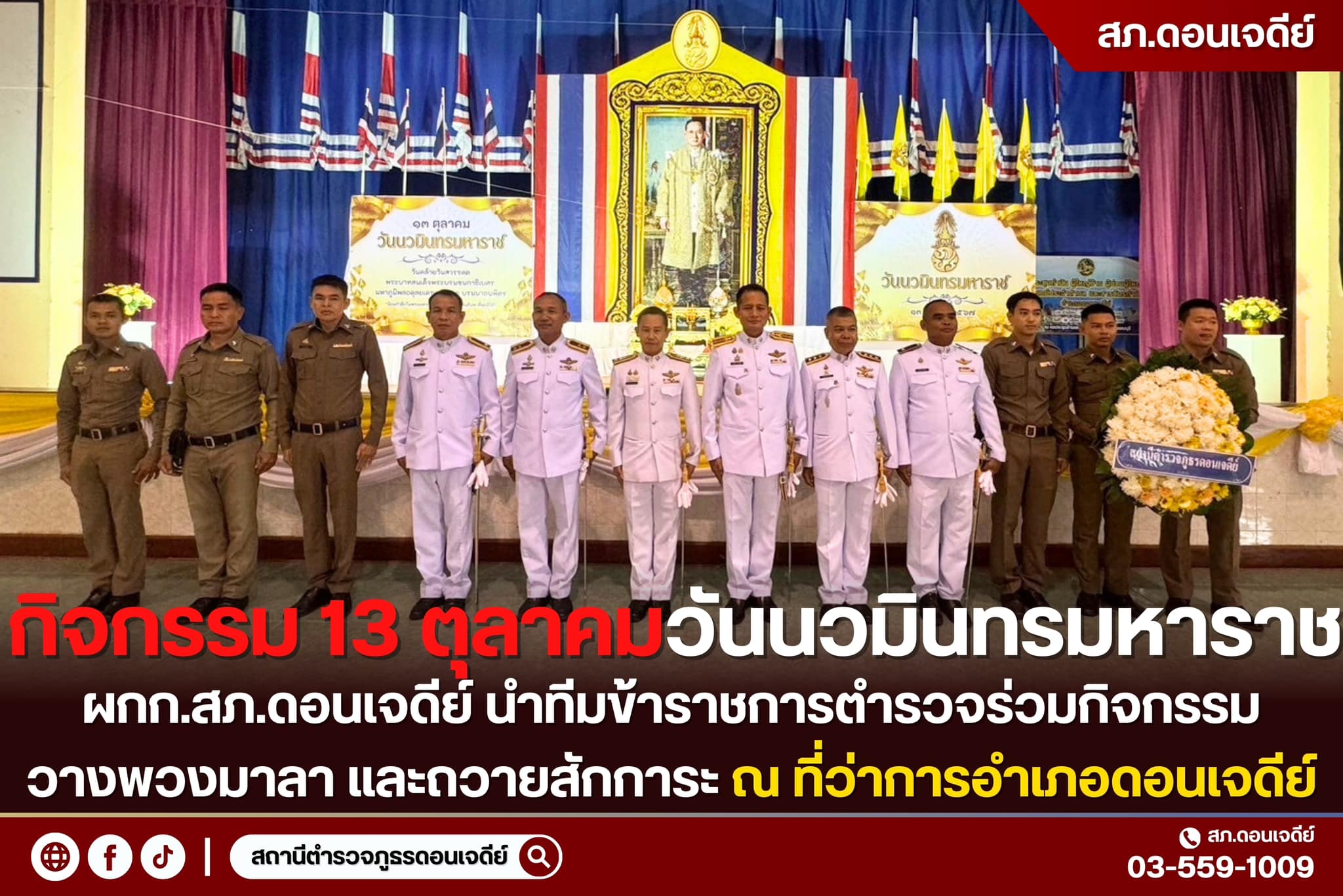 วันนี้ 13 ต.ค.67 เวลา 08.00 น. พ.ต.อ.เอกชัย ศรีเมือง ผกก. สภ.ดอนเจดีย์ พ.ต.ท.ณธกร เมธาพรเกษม รองผกก.