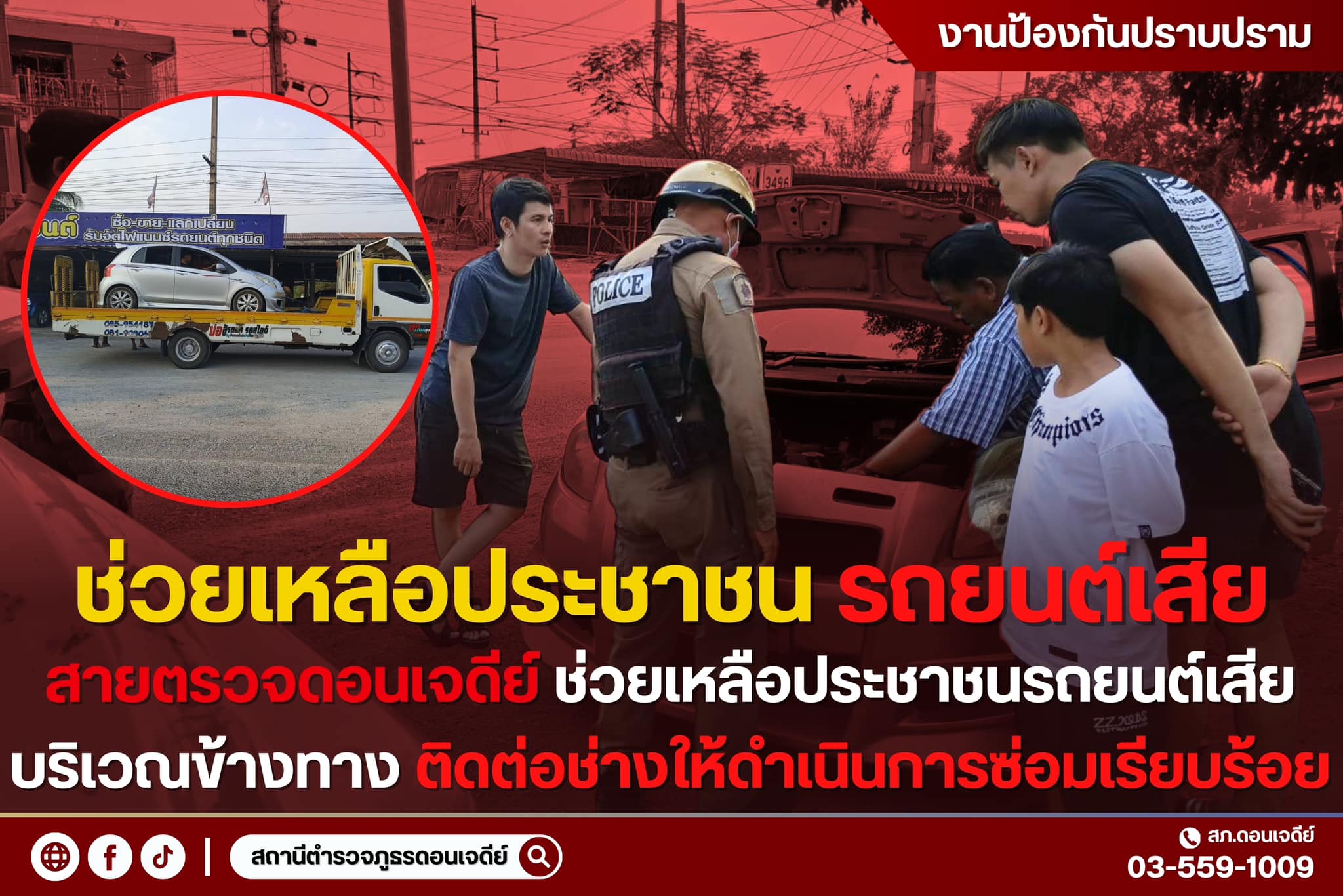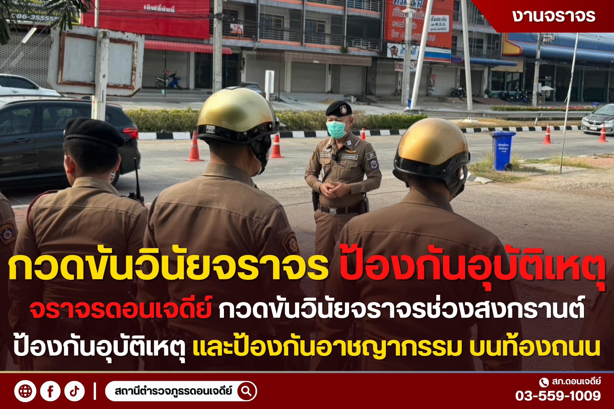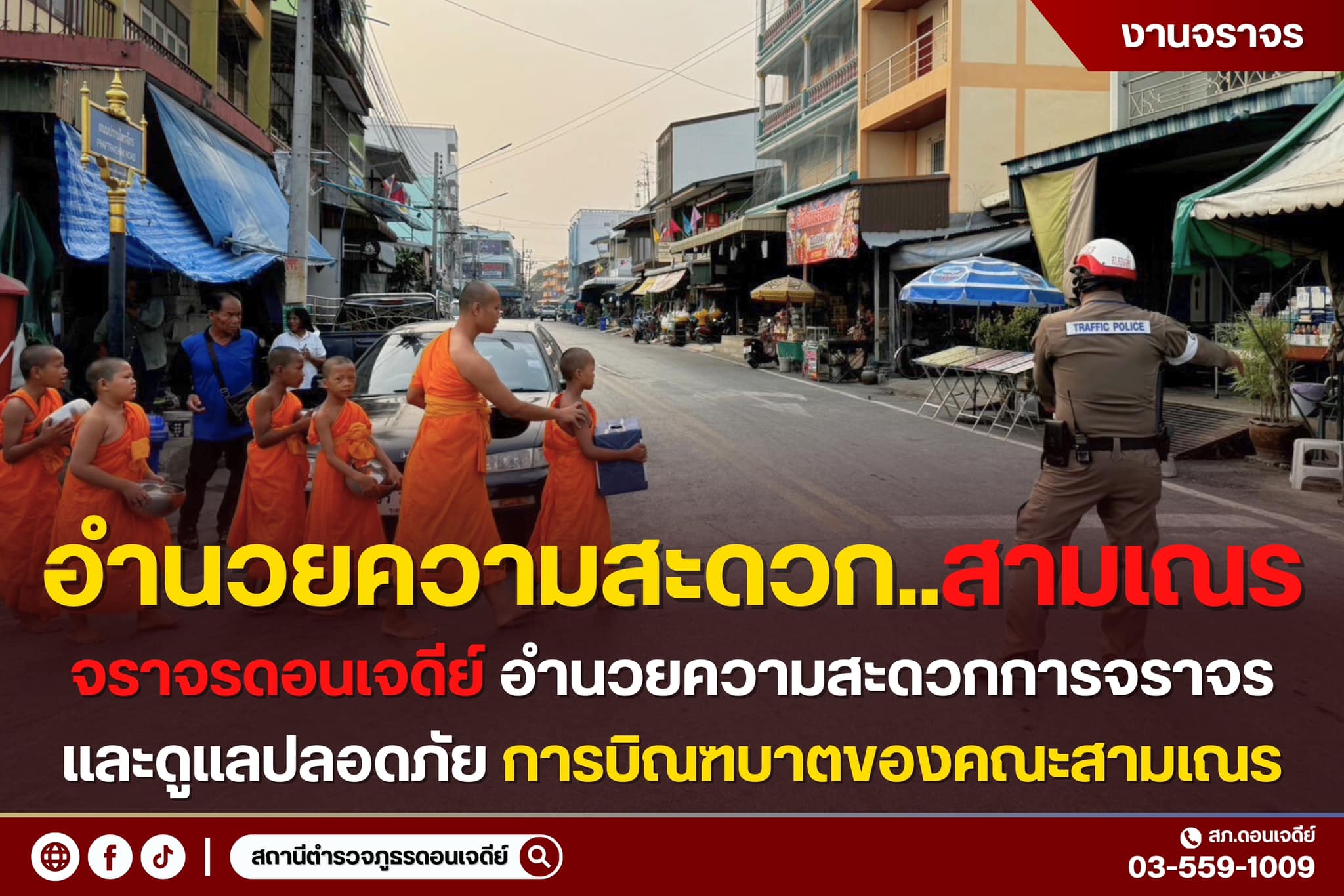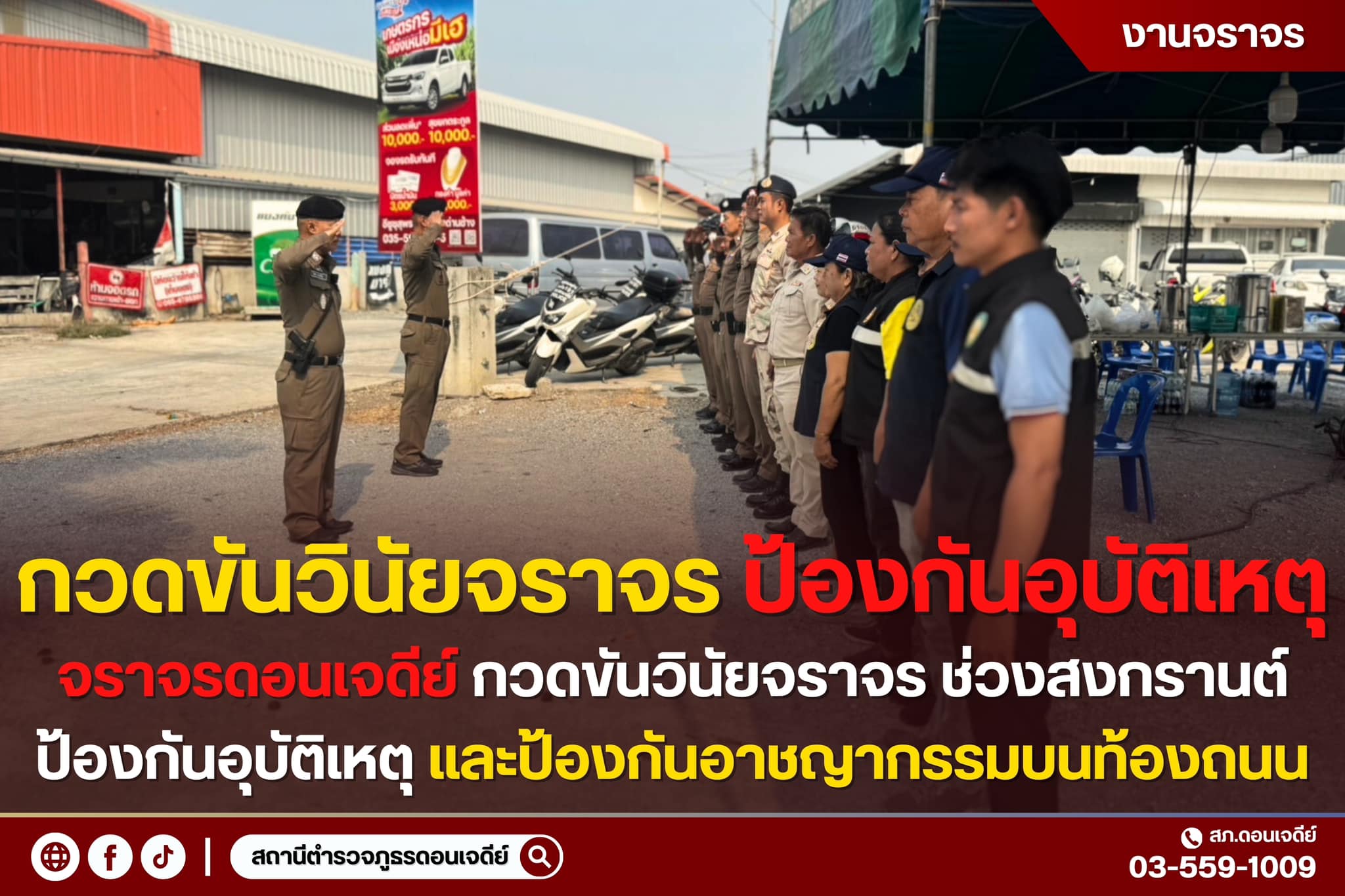 วันนี้ 13 เม.ย.67 เวลา 08.00 น. ร.ต.อ.วิสิทธิ์ มณีขวัญ รอง สว.(จร.) สภ.ดอนเจดีย์ พร้อมสายตรวจจราจร อ