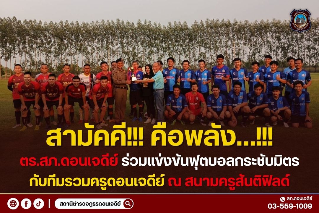 วันนี้( 27 มี.ค.67) เวลา 16.00 น. ทีมฟุตบอล สภ.ดอนเจดีย์ vs ทีมรวมครูดอนเจดีย์ แข่งขันฟุตบอลรายการกี