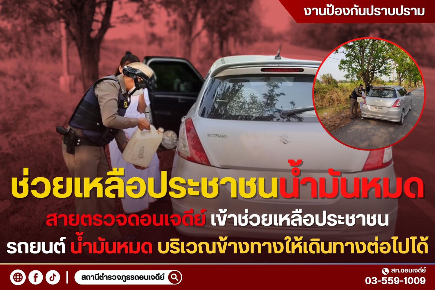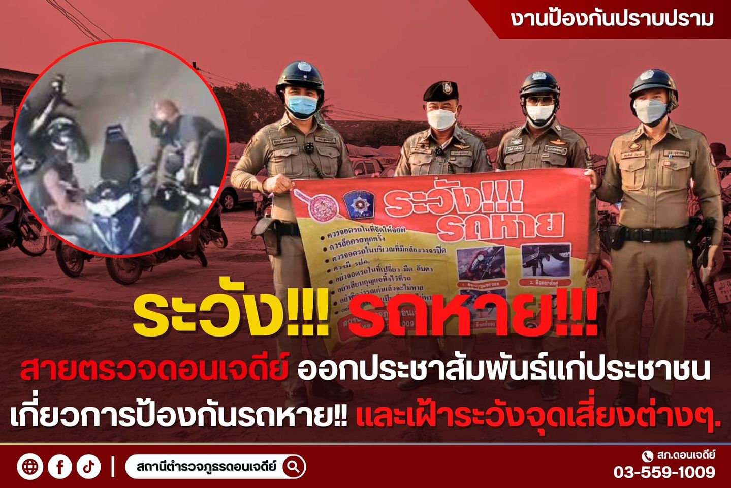 วันที่ 2 เม.ย.67 เวลาประมาณ 17.00 น. ร.ต.ท.สำเนียง ปาริน รอง สว.(ป.)สภ.ดอนเจดีย์ ร้อยเวร20 พร้อมสายต