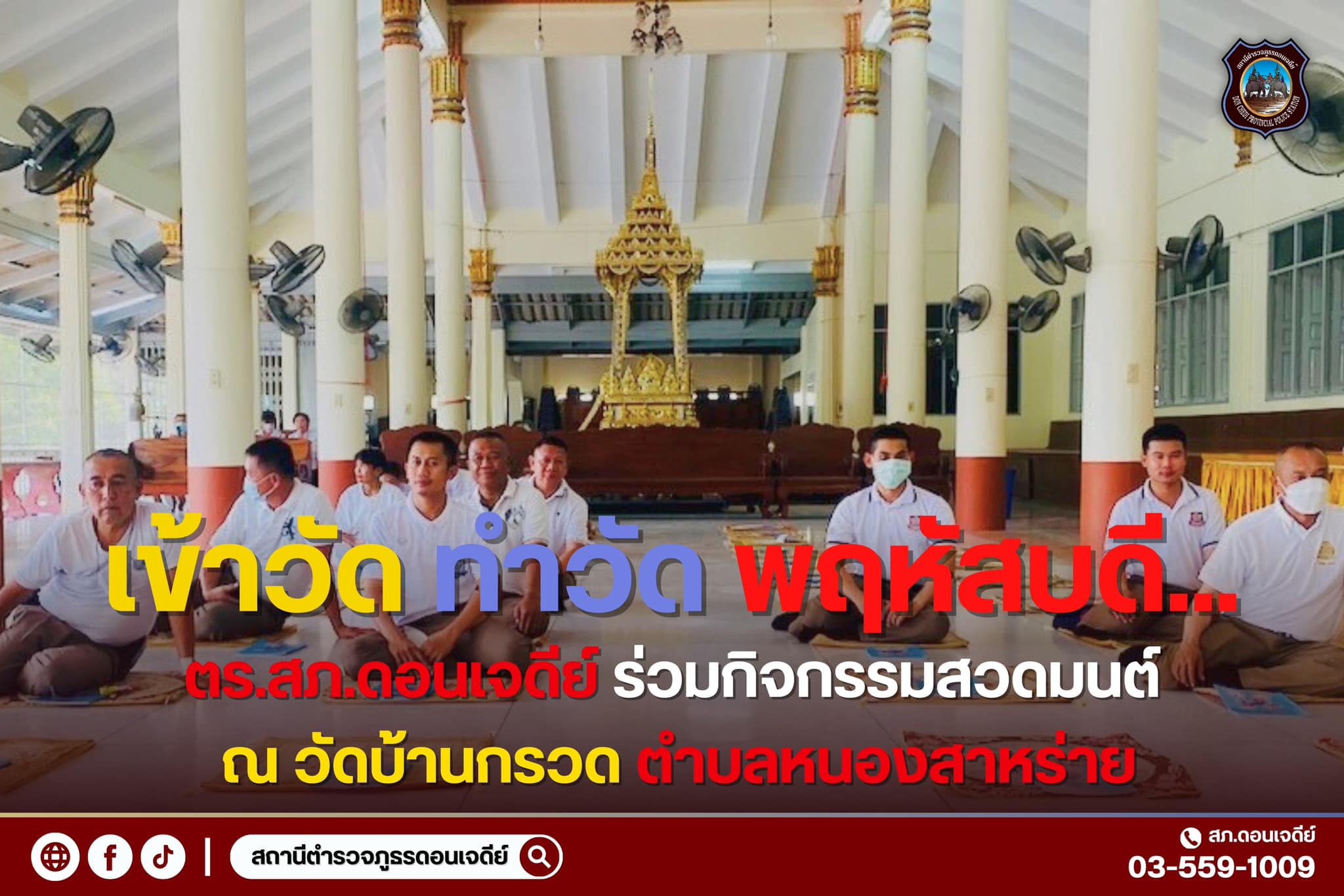 วันนี้ 1 เมษายน 2567 เวลา 09.10 น. ด.ต.พงษ์ศักดิ์ รัตนวัน ผบ.หมู่(ป.)สภ.ดอนเจดีย์ ส.ต.อ.วิโรจน์ ทวนท