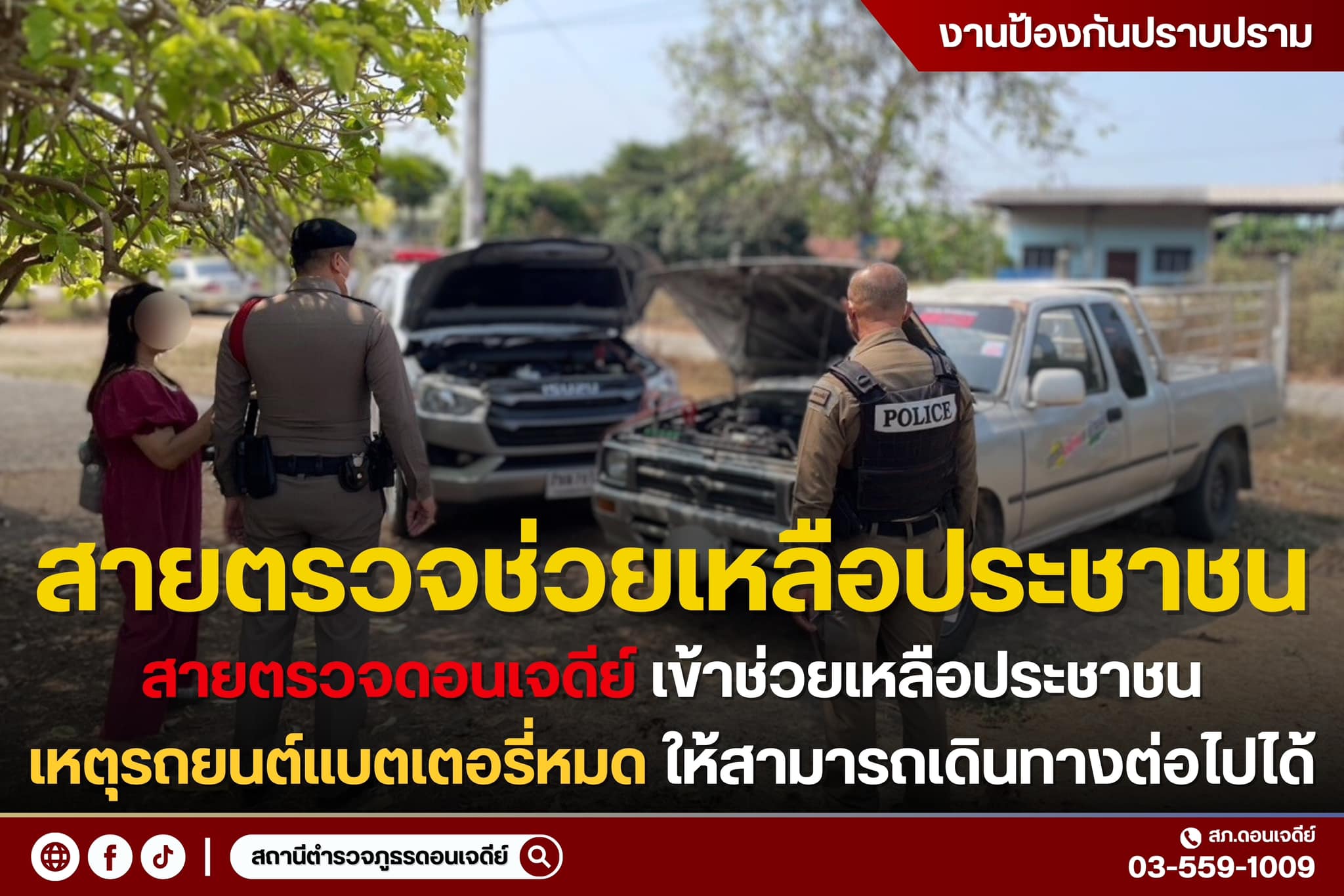 วันนี้( 17 มี.ค. 67 ) เวลา 10.35 น. ร.ต.อ.กรกฤช กีรติพัฒนสกุล รองสวป.สภ.ดอนเจดีย์ พร้อมด้วยสายตรวจรถ