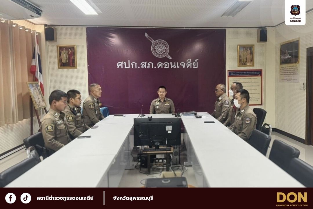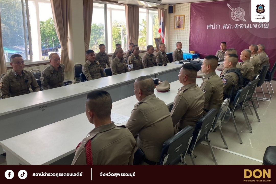 รอง ผกก.สส.สภ.ดอนเจดีย์ อบรมเจ้าหน้าที่ตำรวจงานสืบสวนทุกนายกําชับ การปฏิบัติงานให้ปฏิบัติตามกฎหมายอย่างเคร่งครัด
