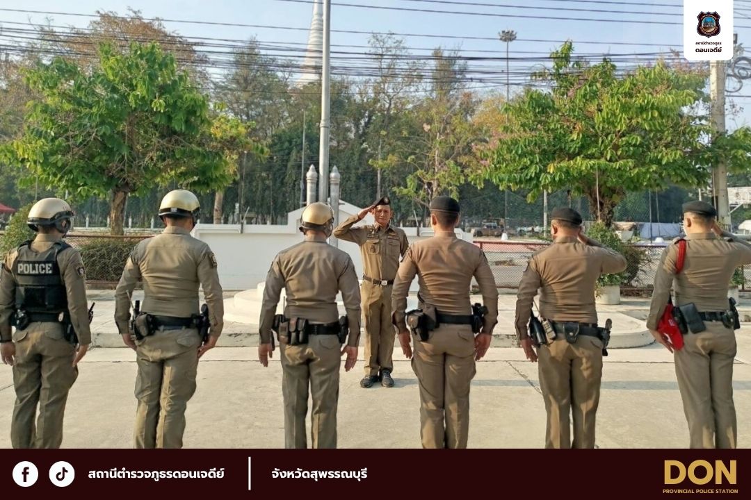 ผกก.สภ.ดอนเจดีย์ อบรมปล่อยแถว สายตรวจก่อนออกปฏิบัติหน้าที่ มีการอบรม กําชับ การปฏิบัติงานของเจ้าหน้าที่ตำรวจสายตรวจ