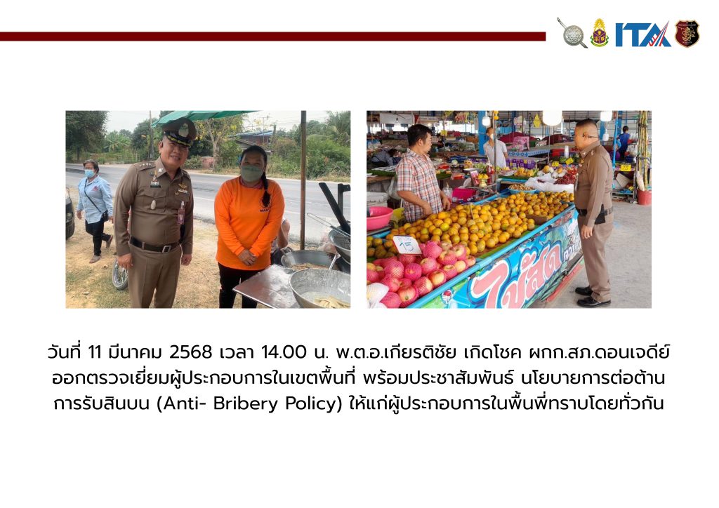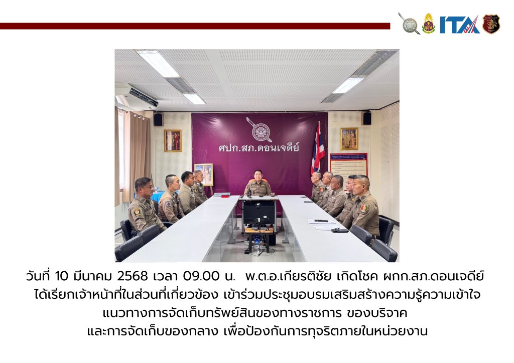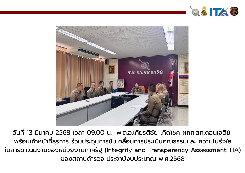 วันที่ 13 มีนาคม 2568 เวลา 09.00 น. พ.ต.อ.เกียรติชัย เกิดโชค ผกก.สภ.ดอนเจดีย์ พร้อมเจ้าหน้าที่ธุรการ