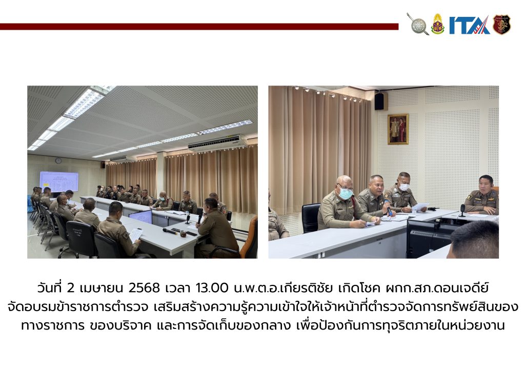 ผกก.ดอนเจดีย์ สั่งการให้ดูแลทรัพย์สินของทางราชการให้มีสภาพเรียบร้อยพร้อมใช้งาน และให้ปฏิบัติตามระเบียบ