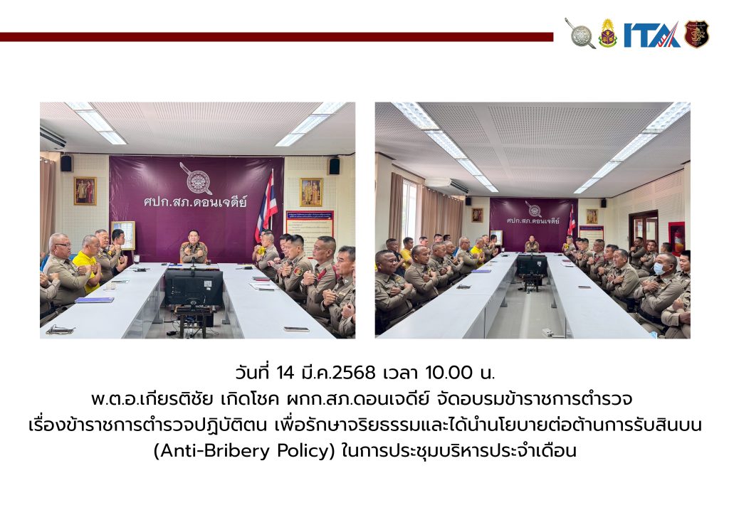 สืบสวนดอนเจดีย์ อบรมปล่อยแถว เสริมสร้างคุณธรรมและความโปร่งใสโดยเน้นย้ำการต่อต้านการรับสินบน